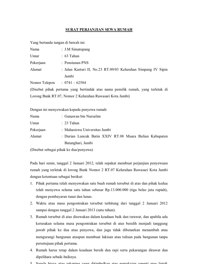 Contoh Surat Perjanjian Sewa Kontrak Rumah Yang Baik Dan Benar